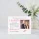 Un lindo salva la fecha con dulces corazones de amor rojos y sofisticado texto de escritura en una simple postal blanca; fácil de personalizar con tu foto personal, nombres y fecha boda sin costo adicional Recuerda hacer clic en el personalizar para mover el corazón en el calendario para marcar tu fecha.