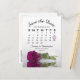 Estas hermosas postales están diseñadas para que sus amigos y familia sepan de su próximo boda. El diseño es elegante y cuenta con un único rosa de color púrpura de tallo largo que refleja un estanque de agua. Hay un calendario para el personalizar del mes de su boda, con un corazón para dejar de lado su día especial. La parte de atrás tiene un lindo gráfico de "lápiz en" con espacio para una nota personalizado. Elegantes, elegantes y sofisticadas, estas bonitas postales son de lo más agradable.