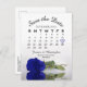Postal De Anuncios Calendario Rosa azul real Boda Guardar fecha
