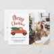 Caligrafía Merry Christmas Tree Red Car Moving Invitación Postcard con foto que usted puede personalizar.