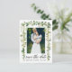 Guión moderno de caligrafía, hojas de eucalipto botánico verde acuático , oro Salven la fecha compromiso Invitación Par Foto