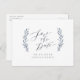Moderno y chic llamamiento para guardar la fecha con diseño de follaje verde azul polvoriento acuarela, simple y elegante, ideal para boda rústica, boda de primavera y boda de verano.