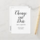 Esta simple y elegante tarjeta de cambio de fecha presenta un elegante cambio de fecha con letra script sobre tus detalles en tipografía negra moderna sobre un fondo blanco. El reverso tiene detalles adicionales, incluyendo tu sitio web de boda, con tu dirección de devolución y espacio para la dirección de tu destinatario. Diseñado por Thisisnotme©