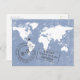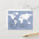 Cambio de planes invitación postal en azul polvoriento, gris y blanco con divertida y moderna tipografía para una boda de destino que ha sido trasladada a un nuevo lugar, reprogramada o retrasada debido a restricciones de viaje y cuarentena de coronavirus, mientras intenta mantener una actitud positiva y agregar un poco de humor gracioso a los sellos de pasaporte personalizados en el mapa del mundo y la editable ubicación del corazón. TODOS LOS COLORES DE ESTA PLANTILLA SE PUEDEN EDITAR PARA COINCIDIR CON SU TEMA DE COLOR; sólo tiene que hacer clic en 'personalizar más adelante' y hacer clic en las capas para ajustar los colores de relleno. La textura vintage es una capa independiente que se puede quitar para una personalización definitiva.