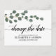 Sencillo cambio minimalista de la fecha de greenery Eucalipto Tipografía elegante de escritura Anuncio de aplazamiento de boda Tarjeta postal