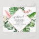 Las hojas de palmeras verdes tropicales pospuestas y la acuarela de las flores rosadas de Rubor con forma geométrica de Rosa Faux y primavera de fondo blanco o Boda de verano cambiaron la fecha - Salven las fechas - incluye hermosa y elegante tipografía de escritura con flores botánicas tropicales modernas y vegetación para la celebración especial del día de la boda.