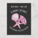 Nuestra divertida y nueva tarjeta postal de notificación de dirección te da algunos derechos para presumir... el texto en el frente de la tarjeta dice, "Hogar nuevo / Trabajo nuevo / Jubilado en Florida / Golfista amateur todo el año." Ese es un mensaje bastante bueno: 1) Tienes un nuevo hogar, 2) jugar golf es tu nuevo "trabajo", 3) puedes jugar golf todo el año, 4) ahora estás jubilado, y... 5) te mudaste a Florida. Hermosas conchas de agua rosadas con acuarela le dan a la tarjeta un ambiente playero, así que tal vez ese sea el sexto punto que puedes mencionar a tus amigos del norte. Todo el texto en el frente y en la parte posterior de la tarjeta postal es personalizable. También está disponible una etiqueta de dirección nueva que coincide.