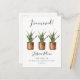 Hazles saber que te has mudado con esta elegante tarjeta postal de anuncio de "¡Me he mudado!". Simplemente agrega tu nombre, nueva dirección en el frente y en la parte trasera, agrega tu nombre y nueva dirección entre el texto del diseño o elimina el texto para dejar la parte trasera en blanco para que puedas escribir a mano tu propio mensaje. Con todo lo demás que hacer con un cambio de casa, al menos puedes hacer que informar a otras personas que te has mudado sea simple con esta tarjeta. El diseño presenta tres elegantes plantas en maceta de acuarela.