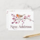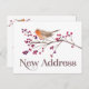Pájaro encantador y hermoso en rama de árbol con bayas. Forma de arte de estilo acuarela con tipografía moderna. La tarjeta perfecta de cambio de dirección o nueva dirección para enviar a familiares, amigos y clientes comerciales.