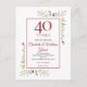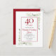 Con delicada vegetación de jardín campestre en acuarela, esta elegante invitación de aniversario de cambio de fecha se puede personalizar con la información de su celebración especial de 40 años de aniversario, con un fondo rubí en el reverso. Diseñado por Thisisnotme©