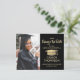 Si circunstancias inesperadas han provocado el aplazamiento o cancelación de su fiesta de graduación, informe a familiares y amigos del cambio de planes con estas modernas invitaciones de tarjeta postal de "guardar la nueva fecha" con diseño de negro y dorado. Todas las fotos y textos son fáciles de personalizar. El diseño cuenta con fondo de lámina metálica dorada y gorra de graduación, y caligrafía de estilo manuscrito. La plantilla incluye tipografía elegante con el nombre del graduado, año de clase y escuela, y una foto de su elección, como una foto de último año o imagen de la ceremonia de graduación. Tenga en cuenta que el dorado es un color impreso, no lámina metálica. Esta elegante tarjeta de anuncio de graduación es una forma elegante y chic de comenzar la celebración de su día especial e invita a los invitados a volver a guardar la nueva fecha reprogramada. ¡Felicidades