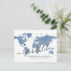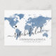 Textura de acuarela azul polvorienta mapa mundial destino boda reprogramar o posponer tarjeta postal con texto totalmente editable para que puedas explicar tanto o tan poco como quieras, y proporcionar un sitio web para que los invitados verifiquen actualizaciones y cambios. —— Haga clic en PERSONALIZAR MÁS para mover el corazón, cambiar el color de fondo y texto, cambiar fuentes, o reorganizar todo y crear tu propio diseño utilizando nuestro arte de mapa de pan de oro falso único. —— Perfecto para ubicaciones de boda de destino tropicales, playa, isla, ciudad, montaña y aventura en todo el mundo. Revisa nuestra tienda de diseñadores para artículos coordinados ... más tarde. Nosotros nos encargamos.