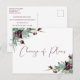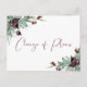 Si las circunstancias requieren que pospongas tu boda esta temporada de vacaciones de Navidad, puedes informar a tus invitados con esta hermosa y moderna tarjeta postal de anuncio de aplazamiento de boda que presenta acuarelas de follaje de acebo estacional con bayas moradas y "Cambio de planes" escrito en una elegante letra morada coordinada en la parte frontal. En el reverso, puedes personalizar tu mensaje de aplazamiento con más detalle.