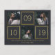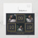 Tarjeta postal de guardar la fecha en carbón y dorado con tres fotos de su elección, y la fecha de su boda en números grandes.