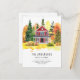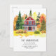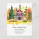 Tarjeta Postal Anuncio de Mudanza Otoño Casa Rústica Roja Bosque Forestal Nos Mudamos Cambio de Dirección
