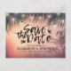 Ahorre las plantillas de la postal de la invitación de la boda de la fecha - las luces y las palmeras elegantes de la secuencia de la boda de playa del verano.