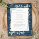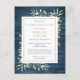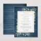 Una elegante tarjeta postal de invitación botánica personalizada con paneles de madera rústica azul con vegetación en acuarela para la celebración de la vida y el recuerdo. Diseñado por Thisisnotme©