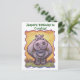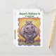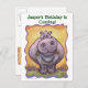 Invitaciones de cumpleaños personalizadas, tarjetas, regalos, favores de fiesta y mucho más de Desfile de Animales Hipopótamo Lindo son para el lado divertido de ti con nuestro arte original de un hipopótamo caprichoso rosa y gris parado en la hierba verde de la sabana con un cielo amarillo y naranja texturizado y un borde morado ondulado juguetón. Pintado por nuestra talentosa artista infantil, Traci Van Wagoner, nuestro divertido equipo de fiesta temático de animales de safari es perfecto para los amantes del hipopótamo de todas las edades. En gran parte de nuestro caprichoso equipo de fiesta de animales salvajes, verás al caballo de agua lindo que viene y va con esta divertida obra de arte de la cabeza del hipopótamo lindo en la parte delantera y la cola del hipopótamo de África en la parte posterior. Únete al Desfile de Animales y hazle a