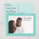 Anuncia tu boda con estilo con estas elegantes y sofisticadas tarjetas de "save the date"! Incluye un detalle de cinta blanca "Save the Date" y texto personalizado (delante y detrás) que se puede personalizar con tu monograma de boda e información, así como un gran espacio de paisaje para mostrar una foto de compromiso. Esquema de color azul aqua / huevo de petirrojo, negro y blanco.