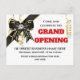 Una maravillosa ilustración de una cinta negra brillante falsa bordeada en dorado que tiene un diamante incrustado que descansa contra un lazo negro sobre un fondo blanco lleno de serpentinas doradas colgantes falsas y plantillas negras para su texto personalizado. La parte posterior tiene un fondo negro y brillo dorado falso sobre el que aparece una plantilla blanca para detalles adicionales para nuevos clientes y invitados que se pueden eliminar si no es necesario. Estos son ideales para cualquier empresa que tenga un lanzamiento suave o para empresas que deseen informar a los posibles compradores que "guarden la fecha" para su gran inauguración. Estas tarjetas planas lujosas y elegantes deleitarán a sus invitados.