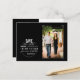 Anuncie su día especial con este sencillo y moderno negro salve la postal de fecha con un círculo con texto blanco y una foto en las esquinas de fotos grises. No hay necesidad de recortar tu foto, solo ponla detrás del fondo negro y eres bueno para ir. Las esquinas de las fotos y el fondo negro son extraíbles. Se ofrecen combinaciones de colores personalizados bajo petición.