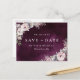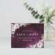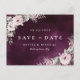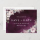 Pintado acuarela botánica floral y vegetación en rosa polvoriento rústico, burgundy y gris sobre fondo púrpura ciruela oscuro acuarela, moderno y elegante, excelentes tarjetas de guardar la fecha para boda moderna, boda rústica, boda boho y boda de jardín en otoño.