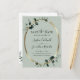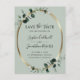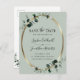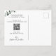 Tarjeta postal de Ahorro de Boda en Verde Salvia con Código QR Metálico Dorado de Eucalipto... Nuestra tarjeta postal de Ahorro de Boda botánica de lujo en verde salvia presenta un marco ovalado metálico dorado adornado con hojas de eucalipto de color esmeralda que crean un borde de aspecto natural para el texto del anuncio dentro. La parte trasera de la tarjeta contiene su dirección de devolución, información del sitio web de la boda y una plantilla de ejemplo de código QR que puede reemplazar simplemente escribiendo la URL del sitio web de su boda. Todo el texto de ejemplo en ambos lados de la tarjeta - y el código QR - se puede revisar fácilmente con sus propios detalles en la plantilla de personalización.