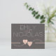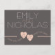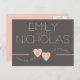 Tarjeta postal de guardar la fecha moderna gris con Corazones de Melocotón que puedes personalizar con tus propios nombres, fecha y texto.
