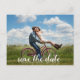 Comparte la fecha de tu boda con estilo con esta tarjeta postal de foto de pareja con estilo de escritura única. Reemplaza la foto del modelo con tu propia foto divertida de la pareja. Agrega fácilmente la información relacionada con el anuncio de tu boda en la parte trasera de la tarjeta. Elige el tipo de papel para tu tarjeta de save the date desde el menú de opciones, arriba.