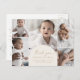 Esta moderna tarjeta postal de postales para el anuncio de la natalidad hace la invitación de recién nacido simple perfecta para un niño o chica. El diseño bohemio de crema y oro presenta una tipografía industrial única con un estilo minimalista vintage. Personalice la parte delantera de la postal con 5 fotos de su recién nacido, el nombre de su bebé y las estadísticas de nacimiento. Incluya un mensaje de invitación más largo y los nombres de los padres o el nombre de la familia en la parte posterior de la tarjeta.