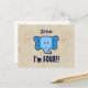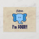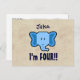 Postal De Anuncios Cumpleaños 4 Cara de Elefante Azul Lindo para NIÑO