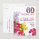 Tarjeta postal de anuncio de fiesta de cumpleaños número 60 floral moderno Guarde la Fecha.