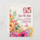 Establece el tono para tu celebración de cumpleaños con esta elegante tarjeta de aviso de cumpleaños número 65. Con un suave fondo de lino y un vibrante número floral “65”, este diseño personalizable es perfecto para compartir los detalles de tu próxima fiesta con familiares y amigos. ¡Disfruta!