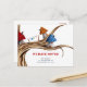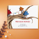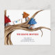 Hermosa y caprichosa postal de invitación con un ilustracion de algunas casas de hadas en un árbol. Ilustrado y diseñado por Patricia Álvarez.