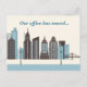 Contemporary customizable just moved cards for your business. Our office has moved, please update your address book. Just fill out the text spaces with your custom company information to send out change of address postcards to all of your business contacts and clients. The final step after moving your company!