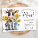 Presentamos nuestra encantadora y moderna invitación en movimiento con una vaca bebé con girasoles en un hermoso diseño acuático. Esta bonita y adorable tarjeta es perfecta para aquellos que quieran compartir su nueva dirección con amigos y familiares de una manera única y creativa. La tarjeta dice "¿Has oído a los Moo?" y es una manera divertida de anunciar que te has mudado a tu nuevo hogar. El tema de los animales de granja es perfecto para los que aman la vida en el campo y quieren incorporarlo a su nuevo hogar. Ya sea que se mude a un nuevo lugar o que sólo quiera actualizar su dirección para el mercado agrícola, estas tarjetas de invitación en movimiento son la manera perfecta de compartir la noticia. Entonces, ¿por qué esperar? ¡Pida la tuya hoy y que todos sepan que te has mudado! DERECHOS RESERVADOS © 2023 Judy Burrows, Black Dog Art - Todos los derechos reservados. Cute Cow Hemos mudado la nueva tarjeta de Invitación móvil del país de la dirección