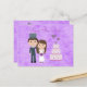 Romántico elegante y elegante bonito lila / lavanda Guardar la postal de la fecha con un divertido y lindo ilustracion personalizado de una novia y novio, pastel boda y corazones. El texto y el tipo de letra son totalmente personalizables para satisfacer sus necesidades - solo tienes que hacer clic en el botón "Personalizar" - hay muchos tipos de letra y colores entre los que elegir. Todos los elementos de diseño se pueden mover, cambiar de tamaño o quitar. Si necesitas ayuda para personalizar tu producto, ponte en contacto conmigo a través de mi tienda y estaré más que contento de ayudar. Arte de Molly Sky Designs.