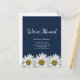 Tarjeta postal de anuncio de mudanza de nuevo hogar azul marino con diseño de dalias blancas y tipografía personalizable. Ideal para informar a sus seres queridos sobre su nueva dirección.