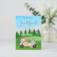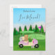 Este elegante cochecito de golf rosado en un campo de golf forestal, lleno de cajas en movimiento. Es un diseño único y humorístico que seguro traerá una sonrisa a tus compañeros golfistas y amigos cuando reciban esta postal.