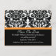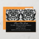 Anuncie a su futuro boda con nuestras tarjetas de anuncio Save The Date que presentan un hermoso patrón de damasco blanco y negro con una banda Naranja. ¡Sólo tienes que añadir la información de tu boda y estás listo para irte! Estampillas y sellos para sobres de franqueo coincidentes disponibles en nuestra tienda en www.celebrateitweddings.com
