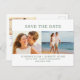Postal De Anuncios Dark Green Text 3 Photo Wedding Guardar la fecha