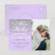 Esta glamurosa, chic y elegante tarjeta postal de guardar fecha de boda con purpurina plateada impresa sobre fondo lila púrpura pastel es perfecta para el evento clásico. Este diseño clásico y sofisticado es ideal para la pareja que se casa trendy y elegante. Personalice con su propio mensaje en la parte delantera, así como una inicial de monograma personalizada en la parte posterior. Todo el diseño de impresión de foto.