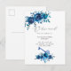 Postal De Anuncios Dirección Nueva Floral Acuarela Azul Marino y Blan