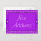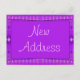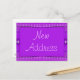 tarjetas postales de nueva dirección púrpura. Descuentos disponibles al comprar tarjetas al por mayor. También están disponibles sellos y tarjetas de felicitación a juego.
