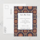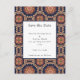 Tarjeta postal de guardar la fecha con un patrón repetitivo de elementos decorativos en forma de flores, estrellas y soles.