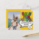 Una divertida, fresca y moderna tarjeta de anuncio de fecha de boda con estilo de cómic que pone el golpe, el zap, el pow en cualquier anuncio de fecha de boda. El reverso presenta un patrón de lunares de cómic coincidente que puedes reemplazar con tu propia imagen o foto. Diseñado por Thisisnotme©