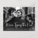 Esta caprichosa y moderna tarjeta de guardar para la boda presenta dos de tus fotos personales favoritas, con una letra manuscrita rústica blanca de moda que dice "estamos atando el nudo". La parte trasera contiene una segunda foto con una superposición translúcida, y más detalles e información de tu boda. ¡Una apariencia simple y casual que es la manera perfecta de hacer saber a familiares y amigos que te vas a casar!