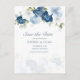 Elegante acuarela floral, polvoriento azul, blanco y marina floral boda de ramo salvando la tarjeta de fecha. La tarjeta incluye un script "Save the Date", que puede cambiarse a un tipo de letra de su elección que está disponible aquí cuando pulse el botón "Personalize". CONSEJO: Consulte los otros elementos siguientes con el mismo diseño que una colección para su comodidad
