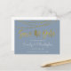 Luces de cadena de Relieve metalizado dorado y estilo manuscrito Dusty Blue Elegant Guardar la tarjeta de invitación de fecha.