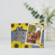 Adorable, rústico, diseño de girasol con mariposa azul sobre madera azul clásica. Plantilla de fotos en la parte delantera y plantillas de texto en la parte posterior para los detalles.